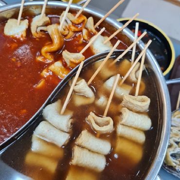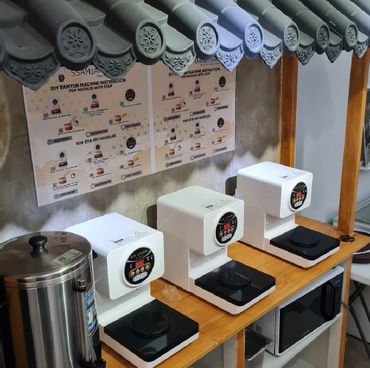 Ssamjang Express Mart in Baliuag, Bulacan is a fusion of a Korean snack bar and a grocery store. The store is designed to look like a traditional Korean Hanok house, giving it a unique atmosphere. It serves rice meals and snacks, along with other Korean grocery items.